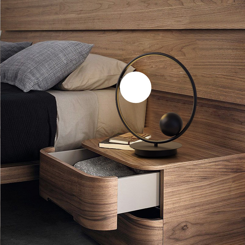 Round Height 40cm Dia 35cm Golden / Black Color Bedside Table Lamp Images |